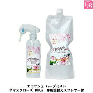 【最大600円クーポン】【3,980円〜送料無料】美容雑貨3 小物 エコッシュ ハーブミスト ダマスクローズ 1000ml 専用詰替スプレヤー付《美容室 美容院 サロン 美容師 道具 業務用》