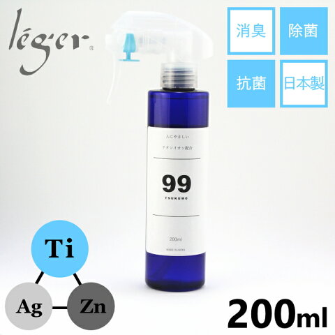 除菌消臭抗菌スプレー 99 TSUKUMO ツクモ 200ml ( チタンイオン 銀イオン 亜鉛イオン アルコールフリー パラベンフリー ノンアルコール 塩素不使用 無臭 脱臭 日本製 )